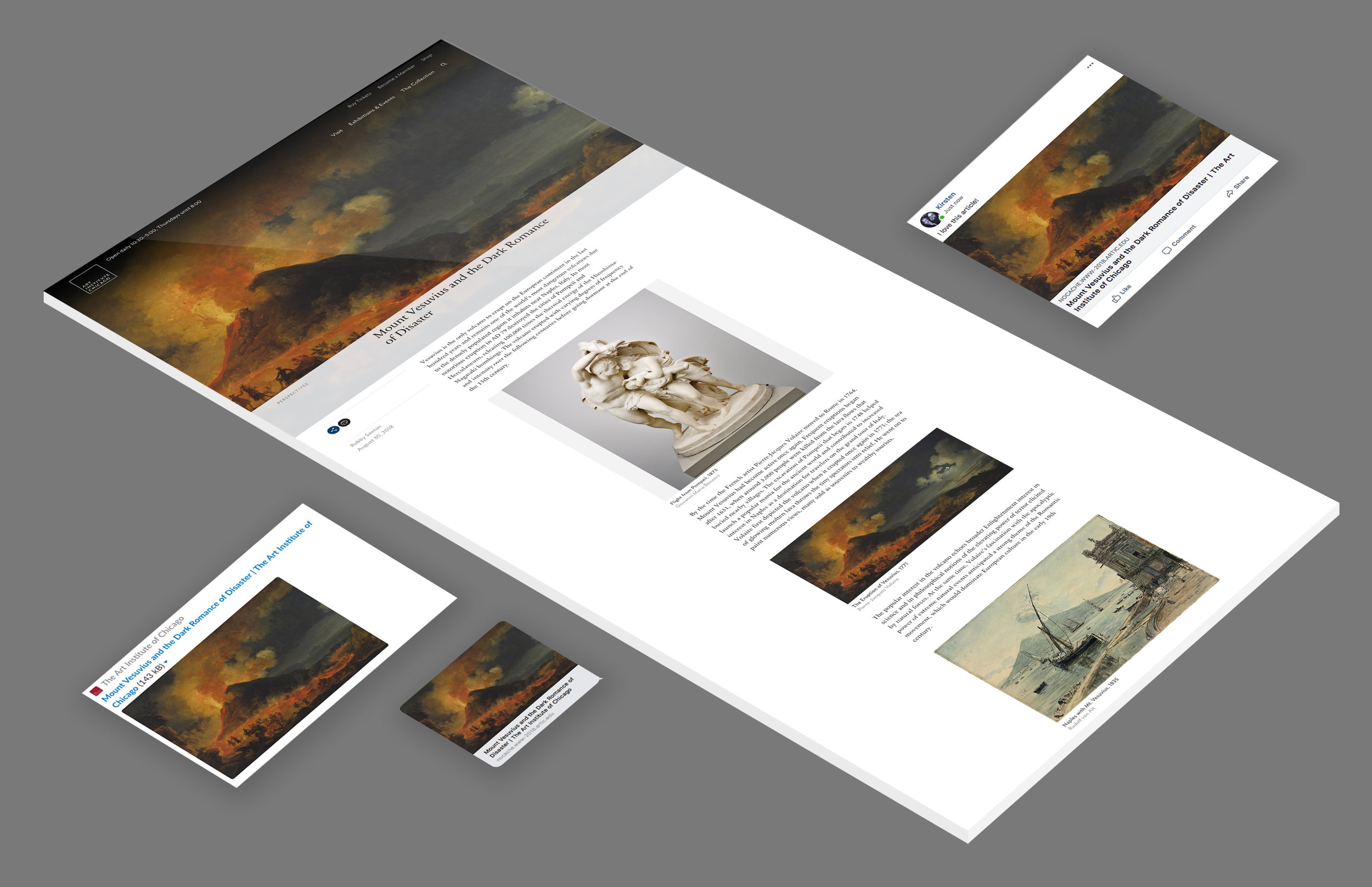 The counterpart to the Highlights pages are Articles pages, designed to capture topics in-depth and explore questions worth provoking discussion. For this reason, we ensured that these pages—and all others on the site—were optimized for previewing on social media and other platforms such as Slack and iMessage.Providing access to artwork is not the only function of the site. A large percentage of our web traffic are potential visitors, looking for the logistical information on how to visit, pathways to buying tickets, and insight into exhibitions and events they won’t want to miss.